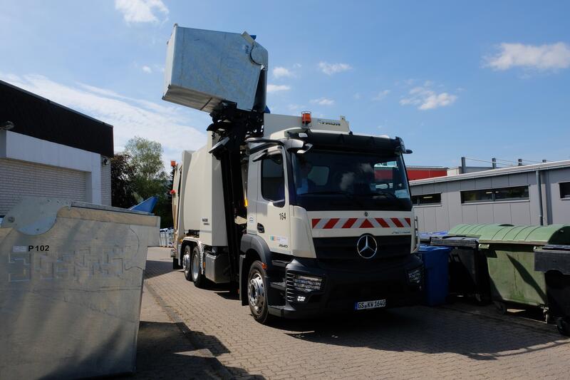 Nicht nur beim Antrieb der Fahrzeuge setzen die KWB auf innovative Techniken: Im Bereich der Depotbehälter für Papier, Pappe und Kartonagen erfolgt die Leerung in Zukunft mithilfe eines neuen Systems. Statt mit einem Ladekran werden die Depotbehälter in Zukunft mit einem Seitenlader am Fahrzeug hochgehoben und anschließend ausgeleert – ähnlich wie bei den blauen Tonnen von Privathaushalten. Rund 340.000 Euro haben die KWB für ein Fahrzeug mit dieser Technik investiert.